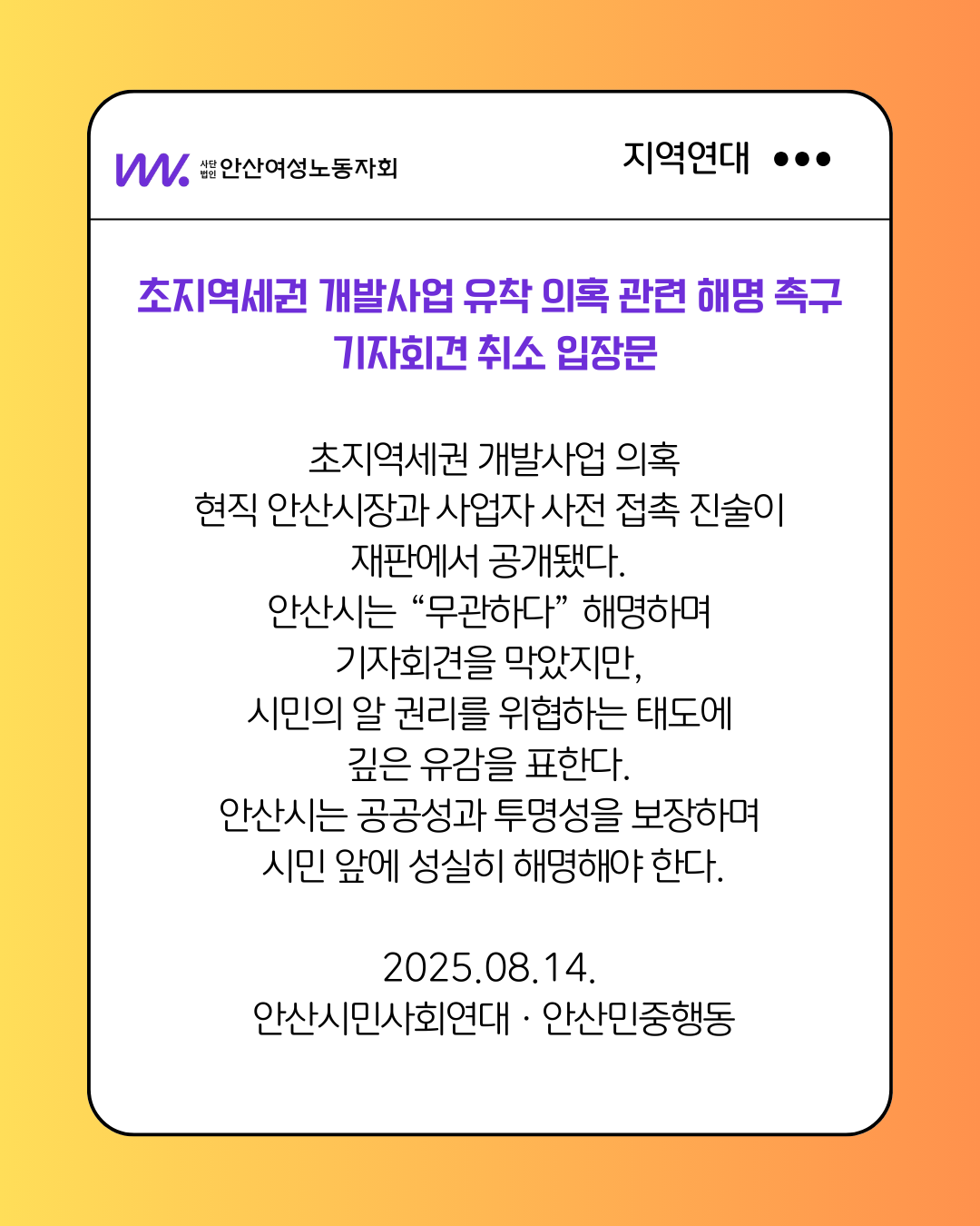 👉 공공성과 투명성을 보장하며 시민 앞에 성실히 해명할 것을 촉구합니다. (8/14)