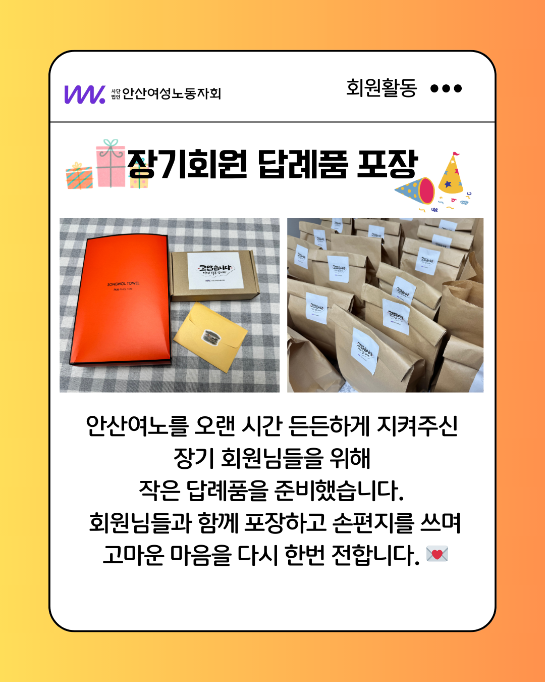 회원님들과 함께 포장하고 손편지를 쓰며 감사의 마음을 다시 전했습니다.