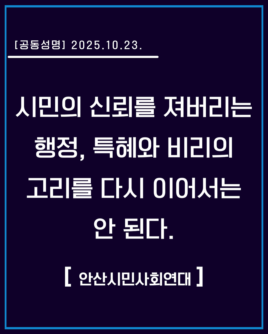 안산시 상업용 현수막게시대 민간위탁 추진 철회 촉구 성명서― 시민의 신뢰를 저버리는 행정, 특혜와 비리의 고리를 다시 이어서는 안 된다. ―