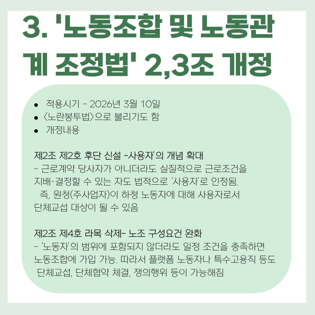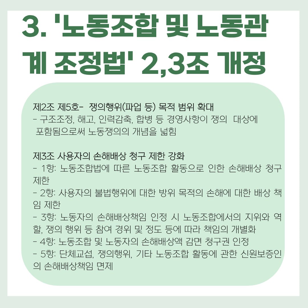 3. <노동조합 및 노동관계 조정법> 2,3조 개정