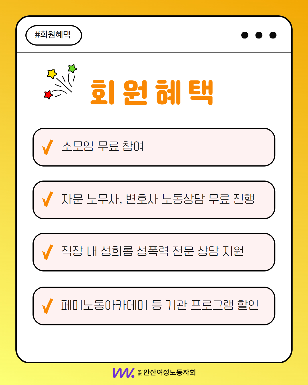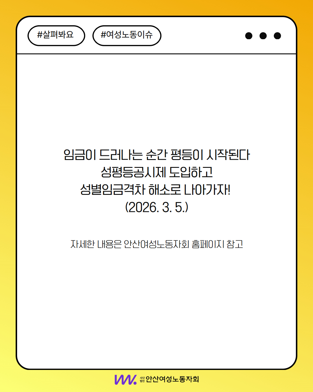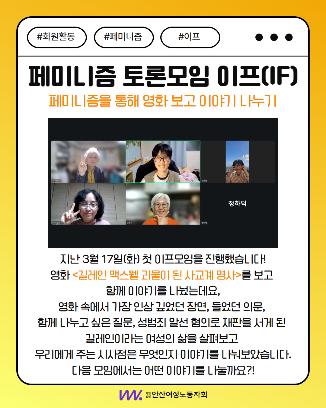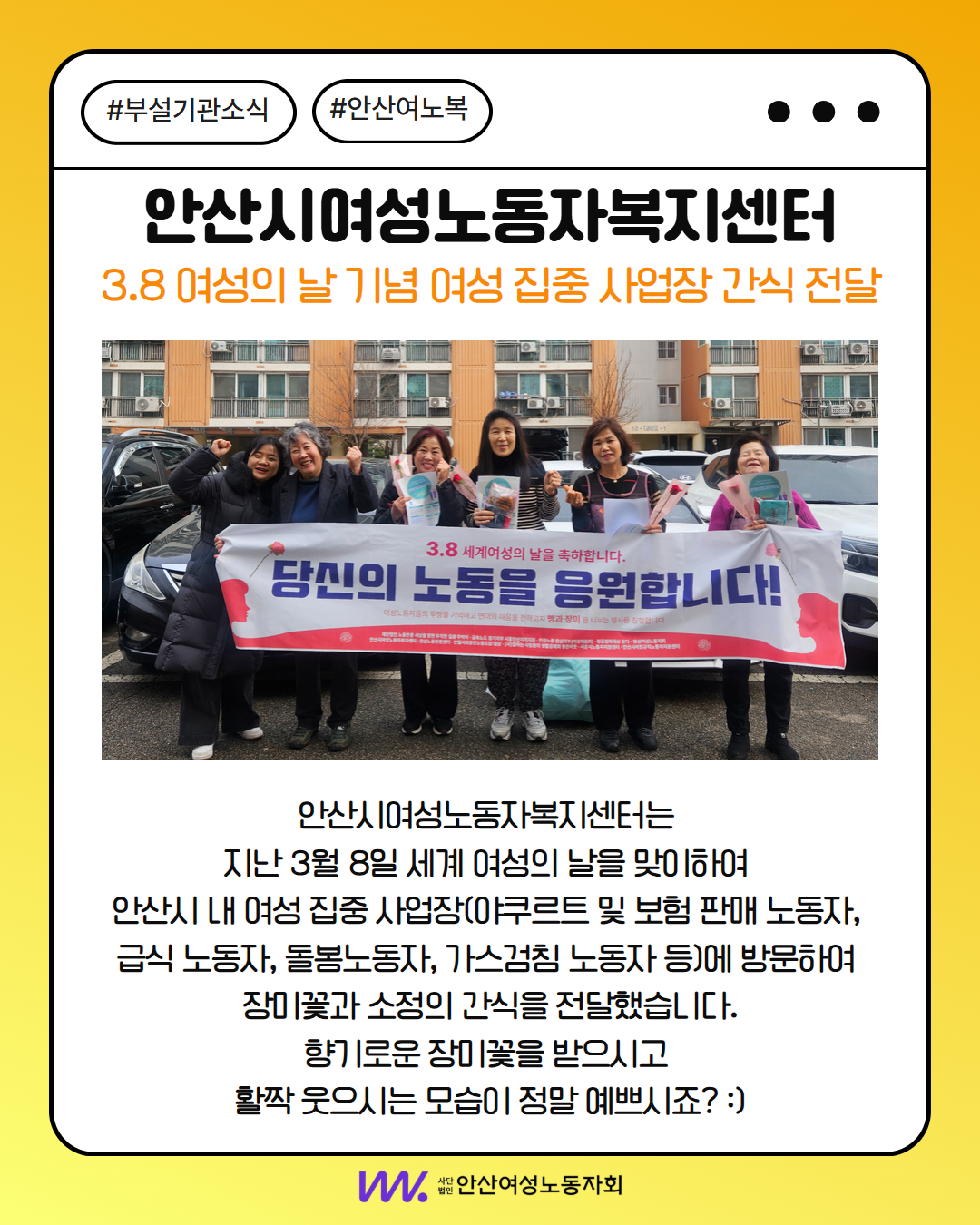 안산여성노동자회와 부설기관의 자세한 활동 소식은 이미지를 참고해주세요 :)